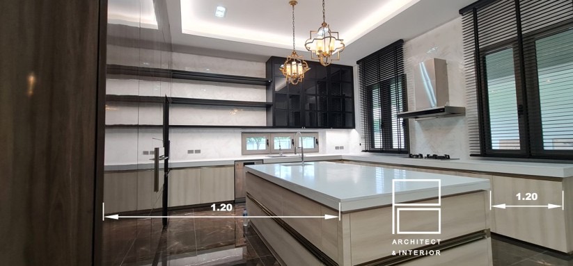 - Humen scale: สัดส่วนของผู้ใช้ทุกช่วงอายุ เพื่อให้ตอบโจทย์การใช้งาน ระยะตู้ลอยบานเปิดที่เหมาะสม ความสูงของเคาน์เตอร์ครัว